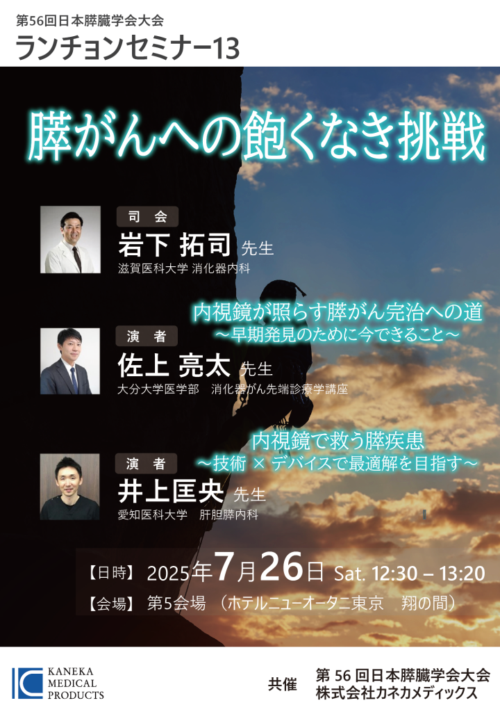 2025年7月26日(土) 井上匡央准教授が「第56回 日本膵臓学会大会 ランチョンセミナー」にて講演を行います。