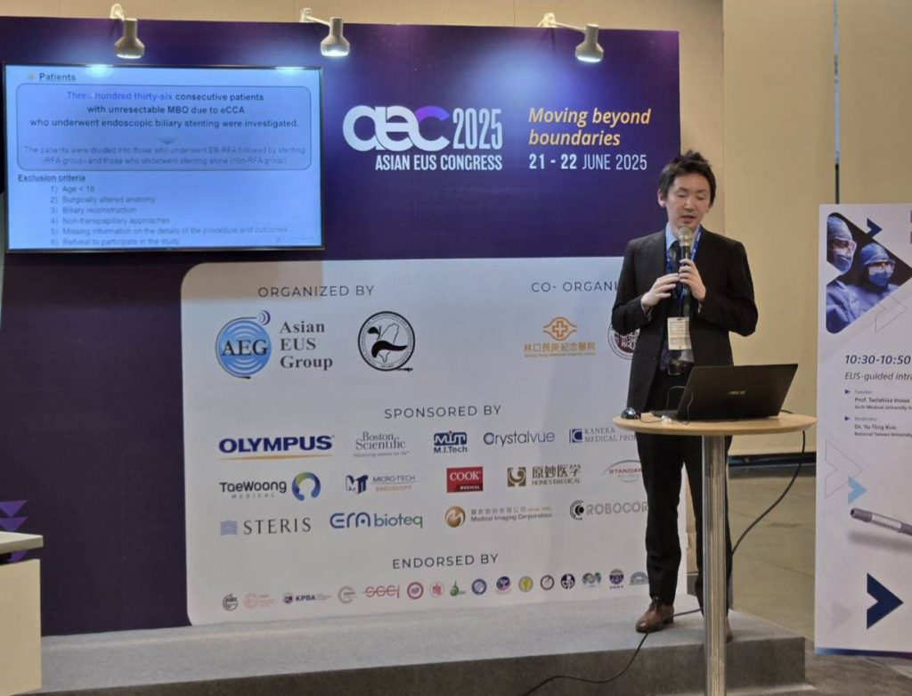 2025.6.23 「Asian EUS Congress 2025」にて当科所属医師による発表を行いました。 Intraductal EUS for indeterminate biliary stricture Tadahisa Inoue EUS-guided intraductal RFA Tadahisa Inoue 参照リンク