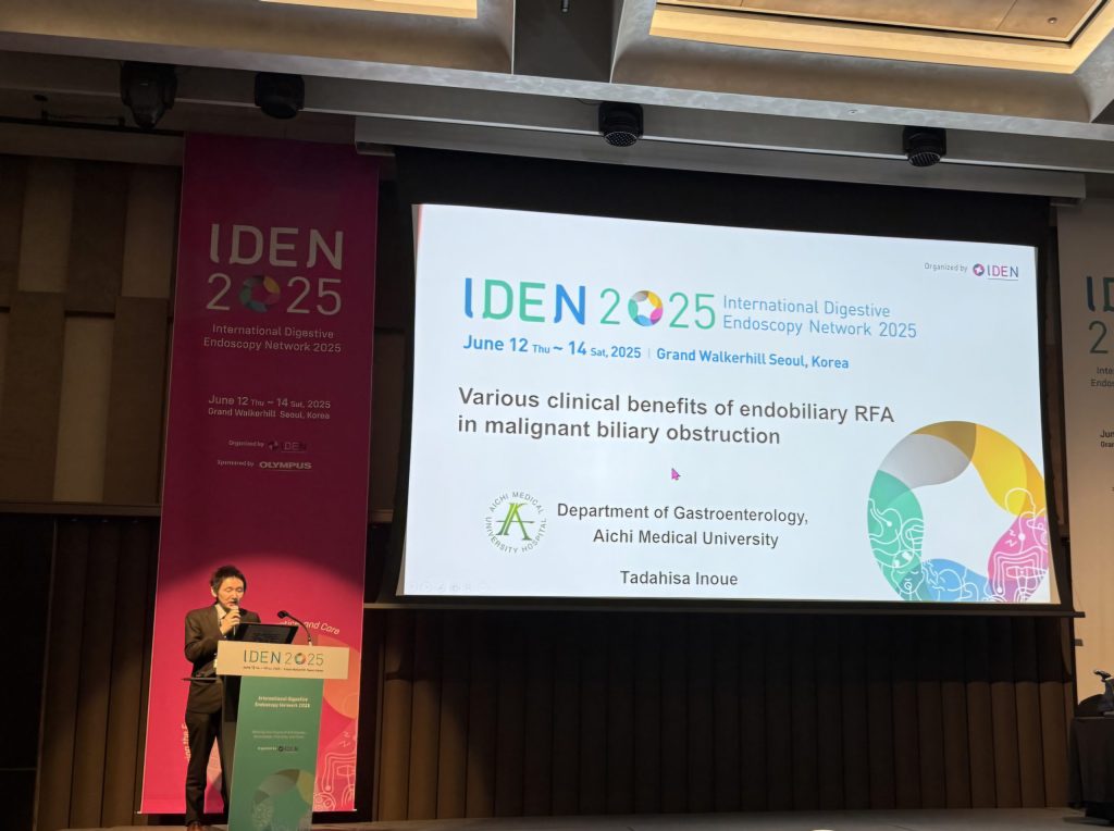 2025.6.19 「IDEN2025」にて当科所属医師による発表を行いました。 [Symposium] Beyond ERCP, in the era of intraductal visualization and management Various clinical benefits of endobiliary RFA in malignant biliary obstruction Tadahisa Inoue (Aichi medical University, Japan) 参照リンク