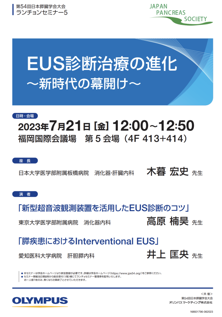 2023年7月21日(金) 井上匡央准教授が「第54回日本膵臓学会大会 ランチョンセミナー」にて講演を行います。