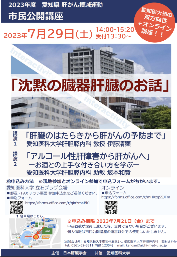 「2023年度 愛知県 肝がん撲滅運動 市民公開講座」にて当科所属医師による発表を行いました。