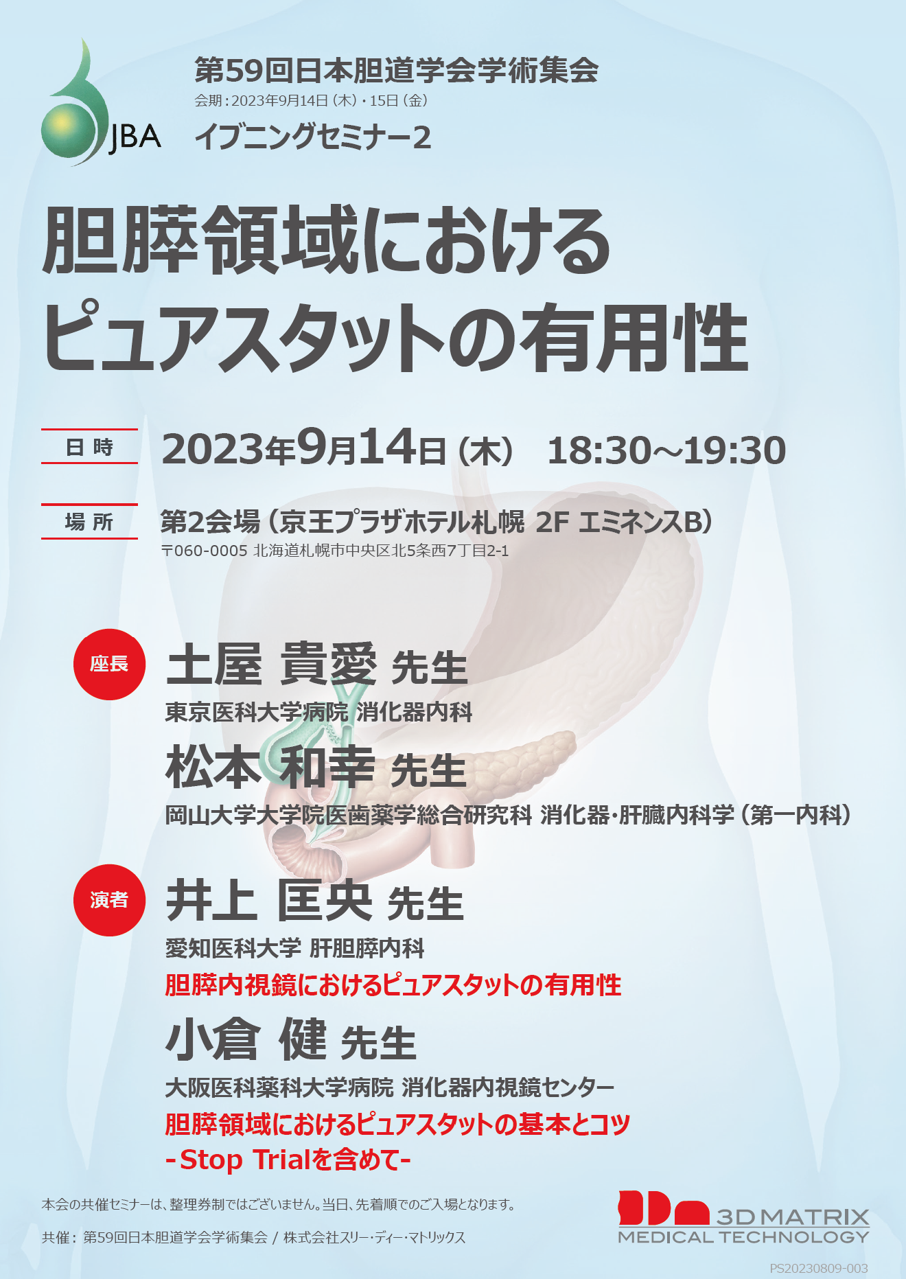 2023年9月14日(木) 井上匡央准教授が「第59回日本胆道学会学術集会 イブニングセミナー」にて講演を行います。
