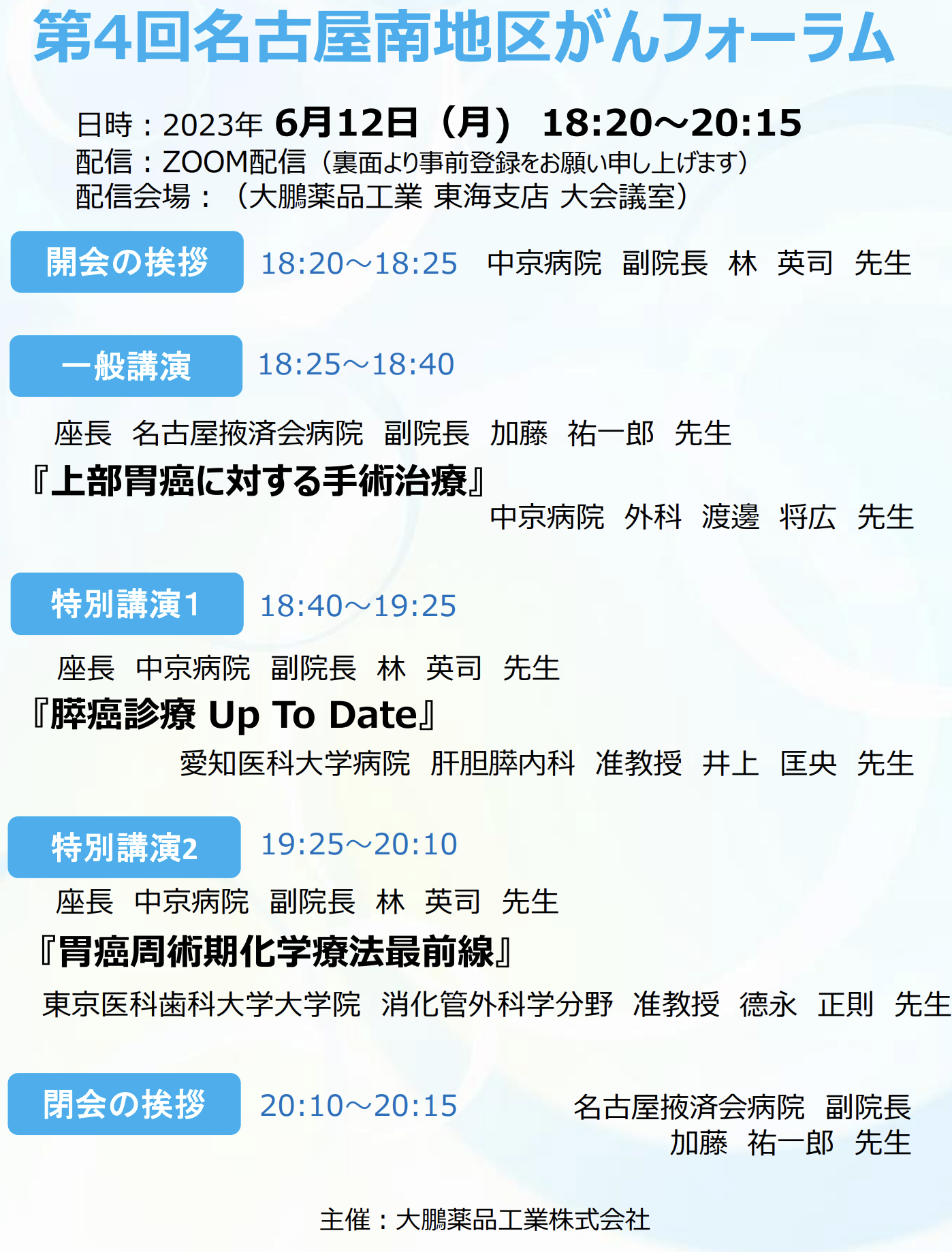 2023年6月12日(月) 井上匡央准教授が「第4回名古屋南地区がんフォーラム」にて講演を行います。