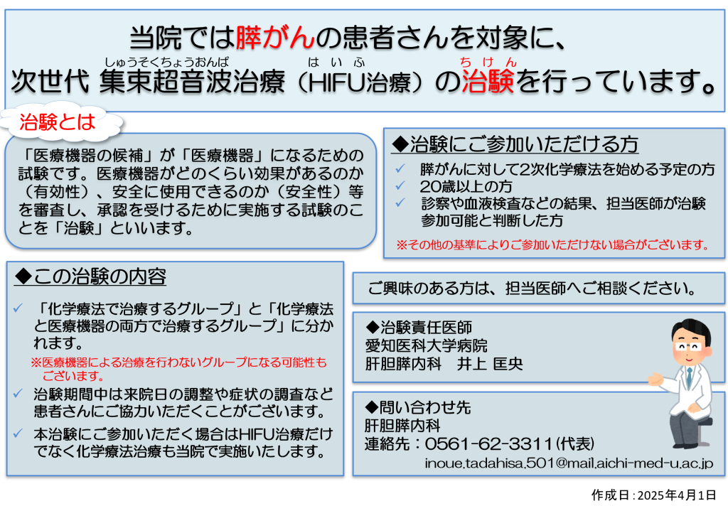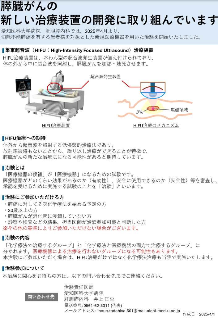 膵がんに対するHIFU治療を開始しました。