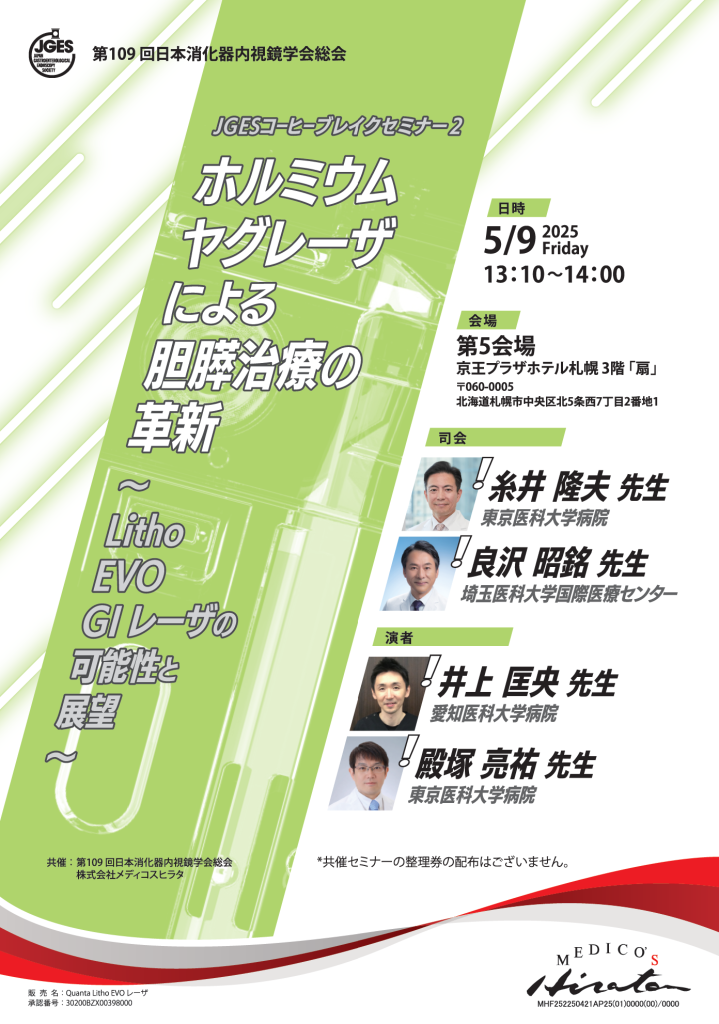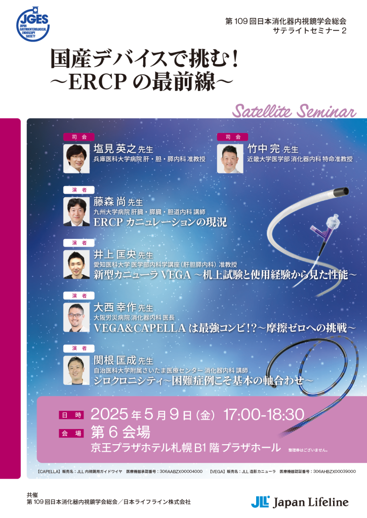 2025年5月9日(金) 井上匡央准教授が「第109回日本消化器内視鏡学会総会 サテライトセミナー」にて講演を行います。