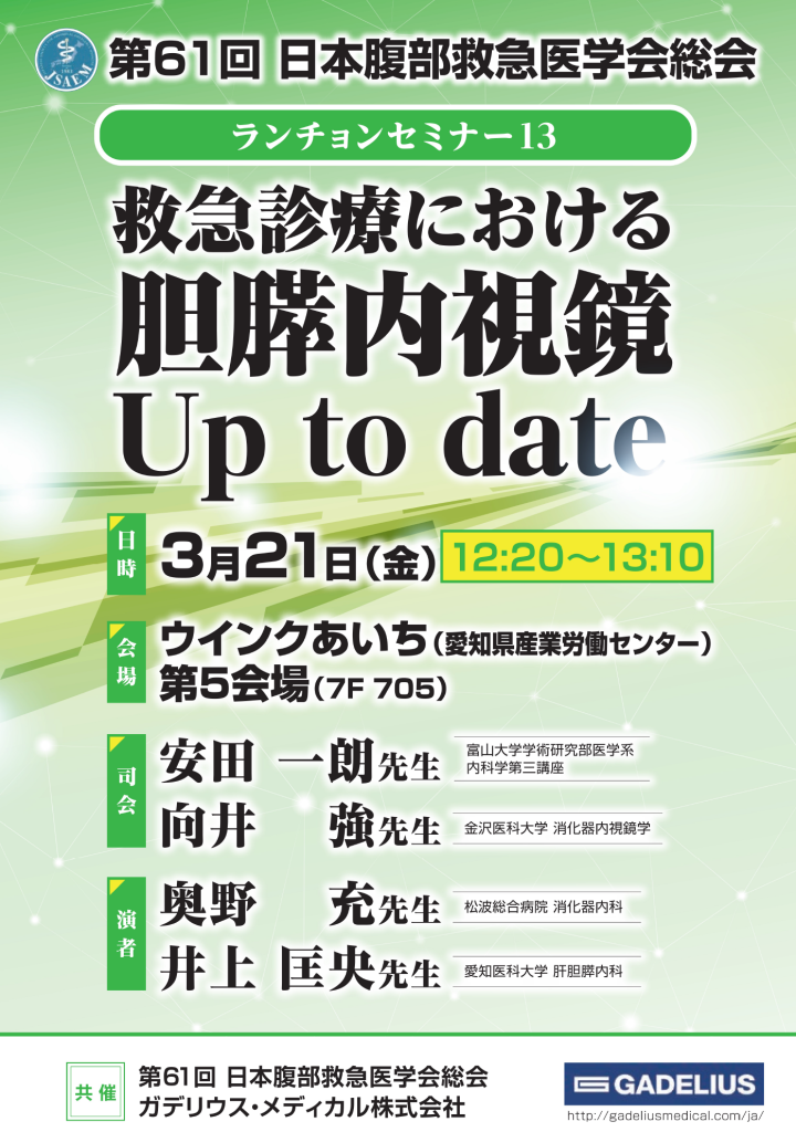 2025年3月21日(金) 井上匡央准教授が「第61回 日本腹部救急医学会総会 ランチョンセミナー」にて講演を行います。