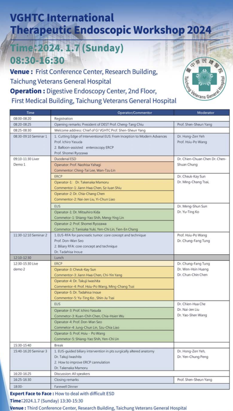 2024年1月7日(日) 井上匡央准教授が「VGHTC International Therapeutic Endoscopic Workshop 2024」にて講演とLive Demonstrationを行います。
